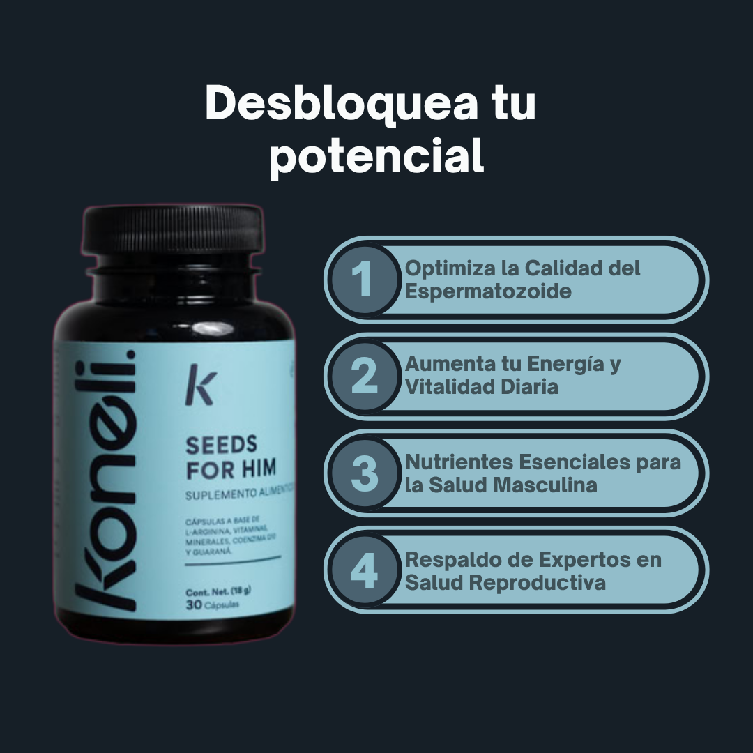 Descubre el impulso que necesitas con Seeds For Him, el suplemento formulado especialmente para quienes se preparan para la paternidad. Nuestro enfoque integral proporciona los nutrientes esenciales para fortalecer tu vitalidad y confianza, ayudándote a estar listo para los momentos más importantes de la vida.